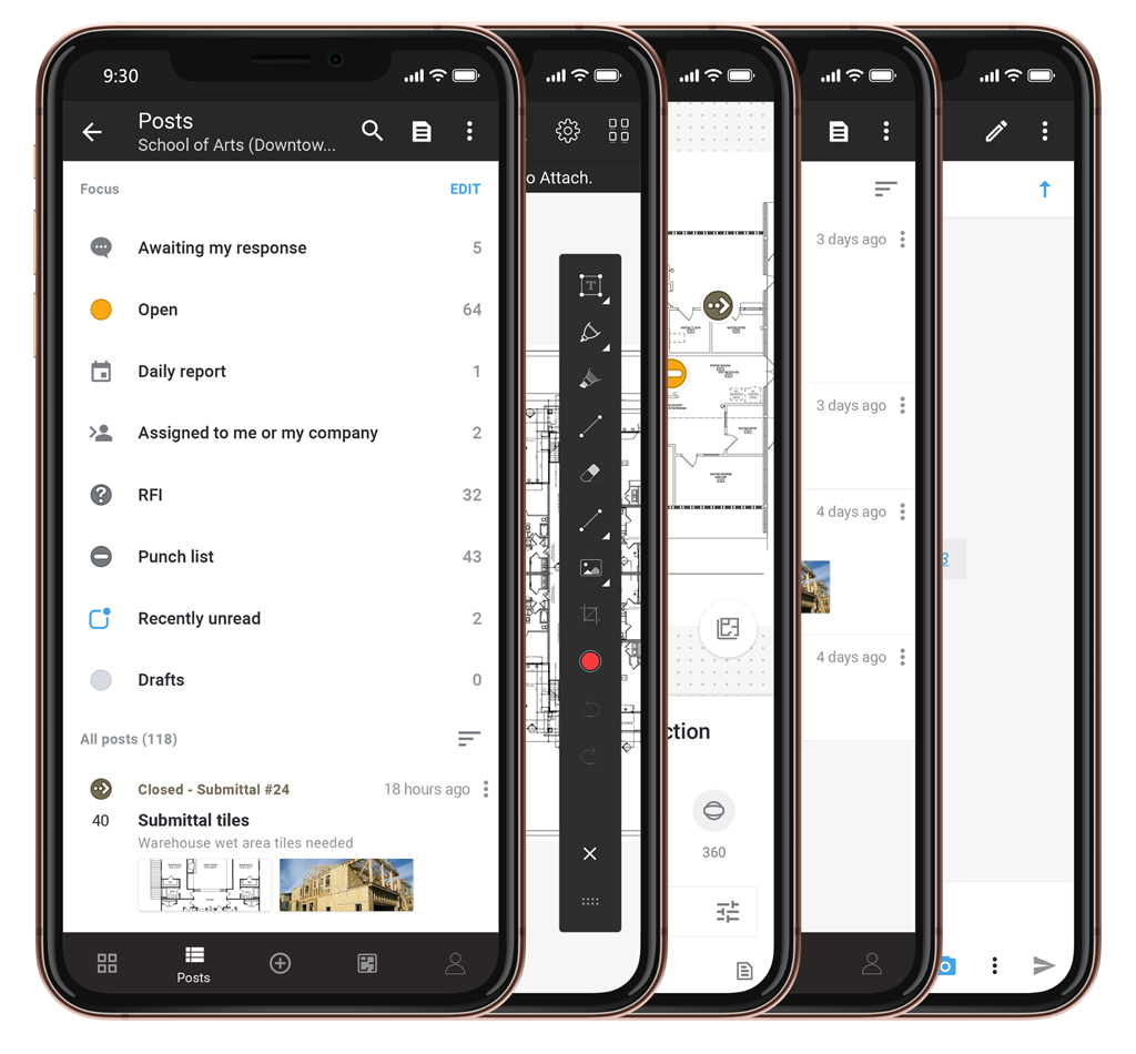 Mark up and redline PDF drawings in your projects and attach the most up to date drawings to posts. Avoid confusion and add context for collaborators in the field or office with the jobsite management tools in Fieldlens.
