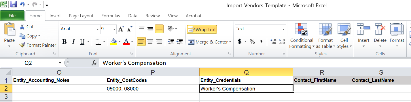 This update to the import spreadsheet for Vendors includes a place to enter Credentials (label only, no attachment) to be loaded in with all the Vendor information.