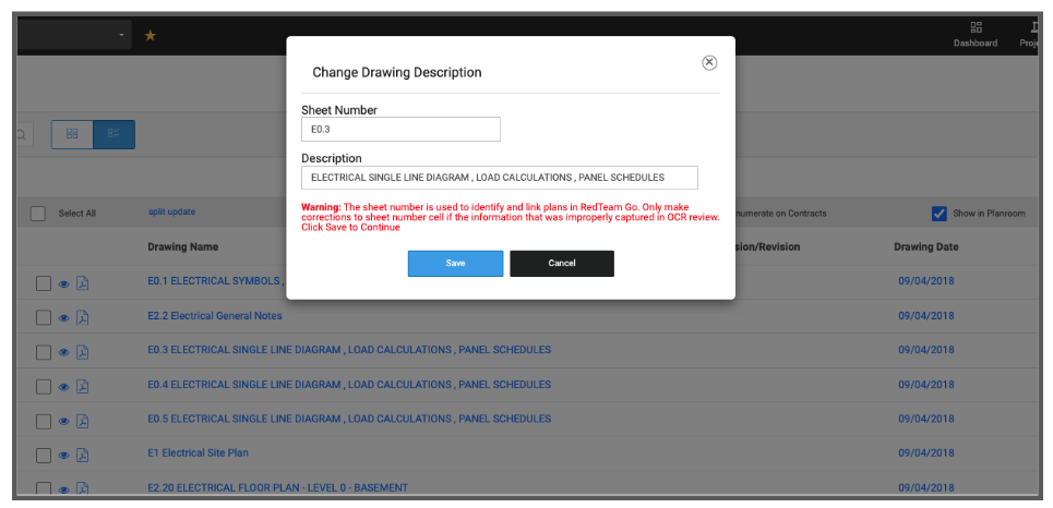 Now available are the options to rename and renumber drawings after OCR has completed processing. Previously, name and number were combined into one field and now they can be separated and updated as needed. This does not affect plan linking or the OCR process, and is an additional optional feature.