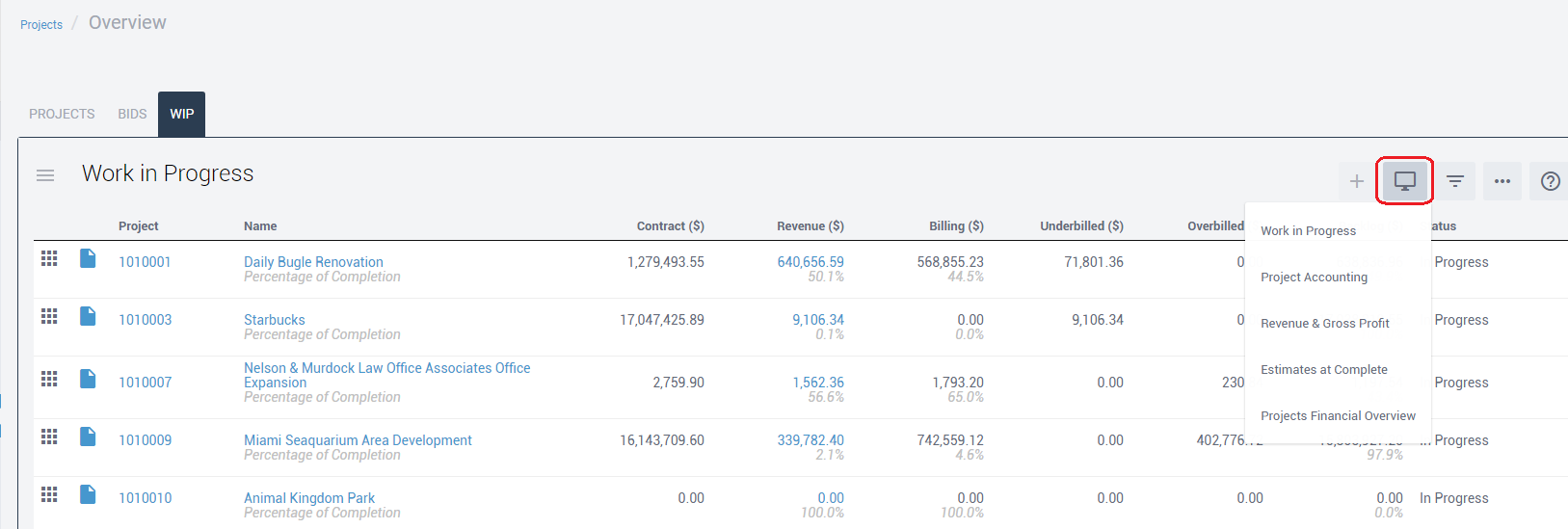 This new report combines the WIP data and data from the Financial Overview reports for all Projects in the WIP