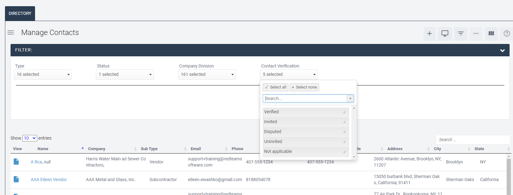 If you are using the Contact Verification when adding new Companies and Contacts to RedTeam, you can now filter by the status of these Contact Verifications.
